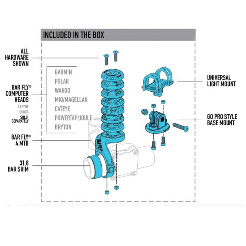 The Bar Fly 4 Mini is an “out-front” mount made specifically for smaller cycling computers. Modular system mounts your computer, Di2/EPS junction box, and a GoPro or light. Compatible with 31.8mm and 35.0mm handlebars.